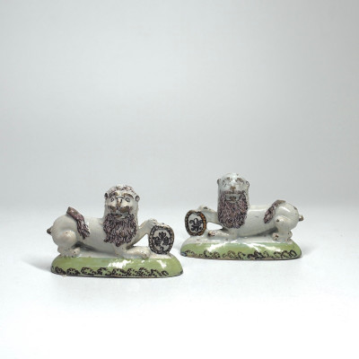 Paire de lions en faïence du nord de la France - XVIIIe siècle