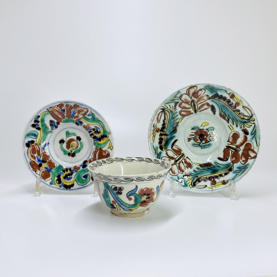 Kutahya (Turquie ottomane) - Un bol et deux coupelles  - XVIIIe siècle